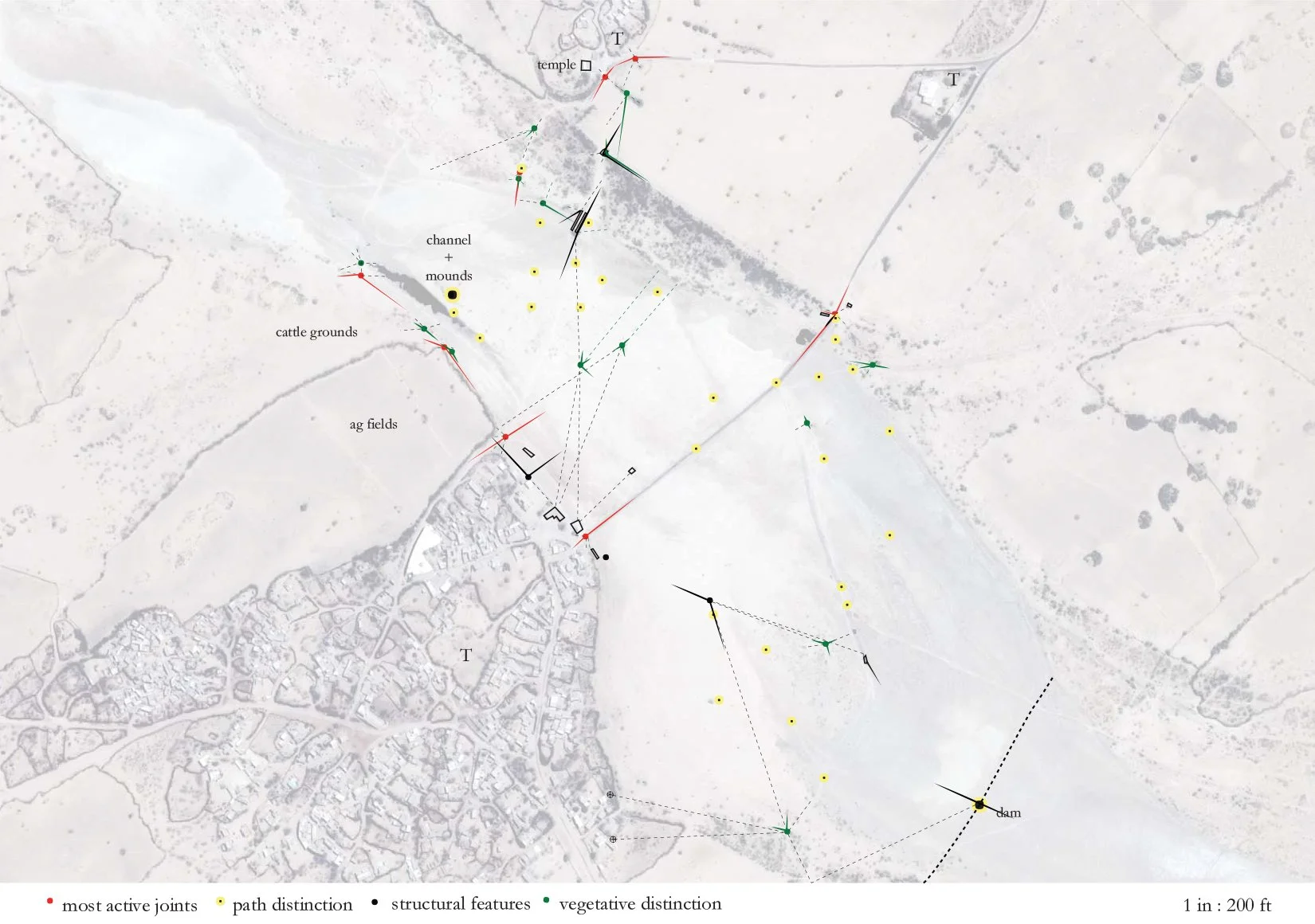 Together, these layers form a temporal and spatial system that visualizes the riverbed as a shifting landscape of use, ritual, and ecological change.