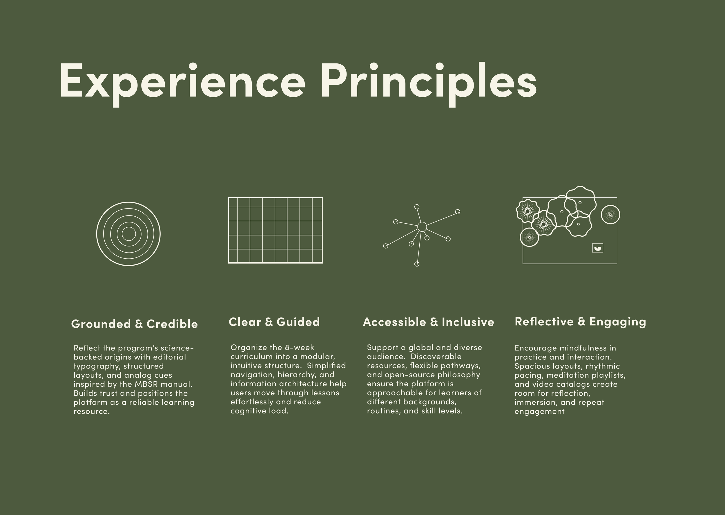 This redesign focuses on making the experience more intuitive and engaging without diluting the integrity of the practice. The goal was to support open access to mindfulness education through a calmer, more navigable digital environment.