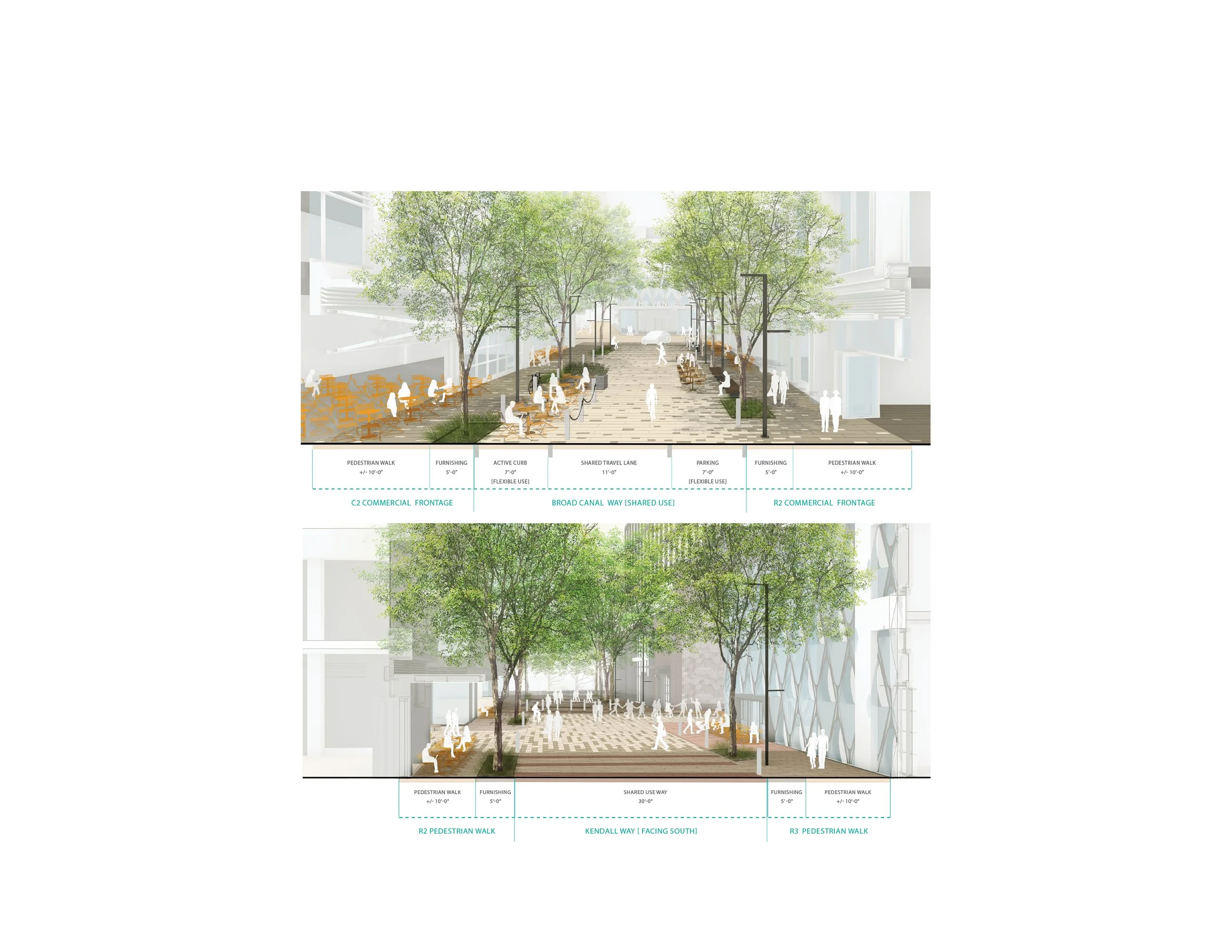 My role included developing clear, user-friendly graphics for public meetings, as well as producing Rhino studies and sectional drawings that tested the character of the front-facing plaza and pedestrian street experience. These tools helped translate complex planning ideas into accessible visual narratives for stakeholders and the public.