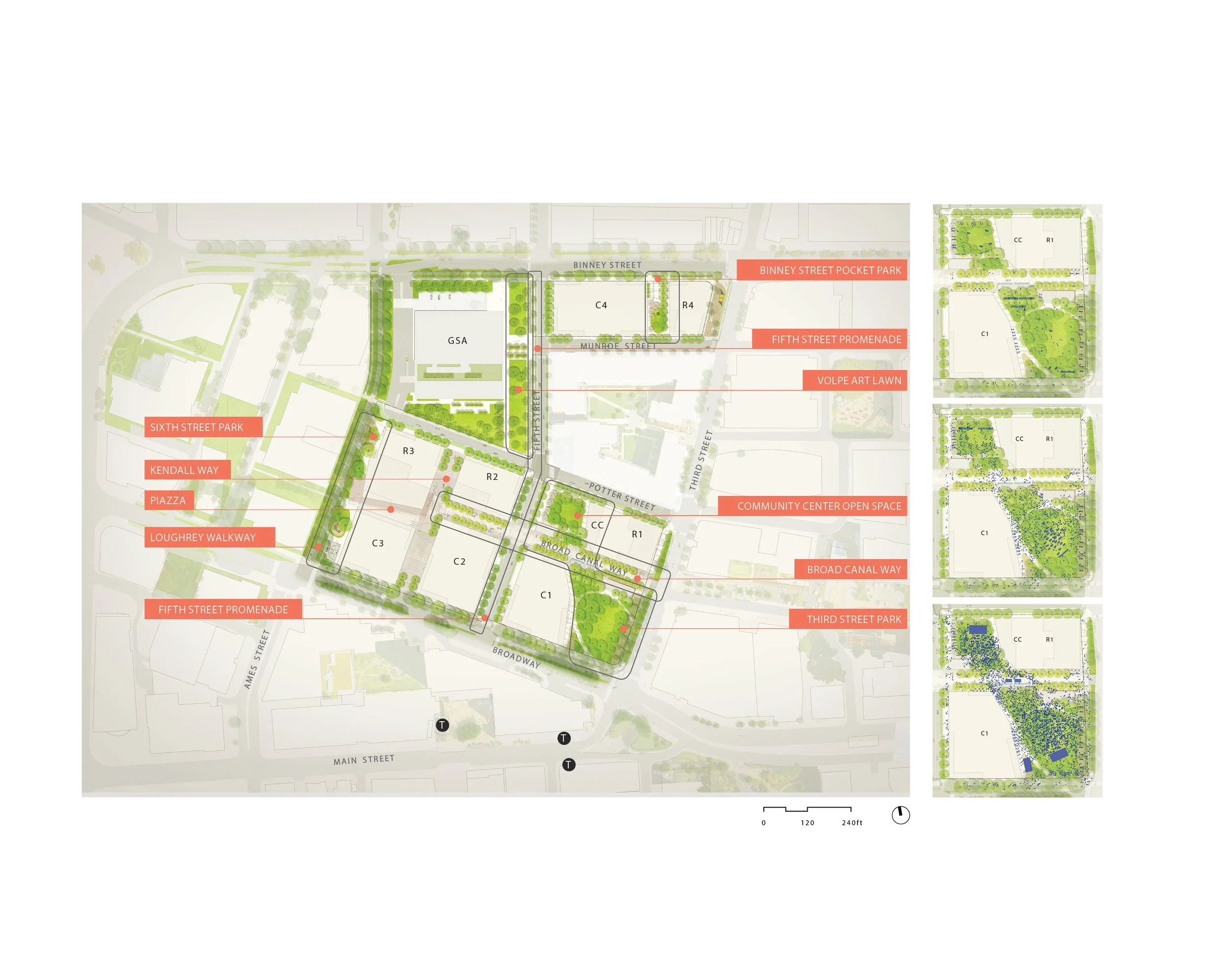 VOLPE MASTER PLAN is a collaborative project developed during my time at Reed Hilderbrand, working with MITIMCO and the City of Cambridge. The work focused on shaping the future of Volpe’s civic edge in Kendall Square through iterative design exploration, spatial strategy, and public engagement.